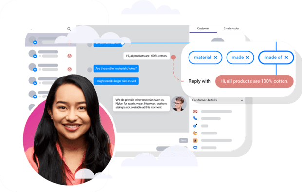Leverage a single inbox view of all customer inquiries and intelligently route them to the appropriate associates. Share relevant product info from a central product catalogue or create carts for customers to drive a seamless checkout.Order management, fulfilment, and payments integration